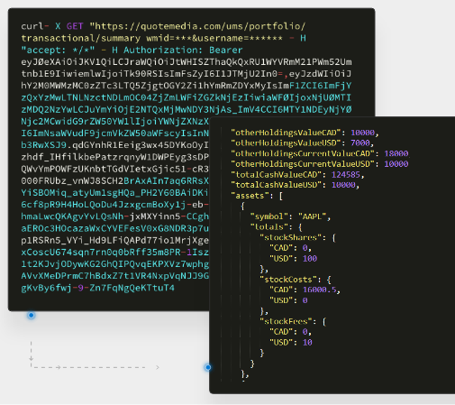 QuoteMedia's API allows you to easily manage and create end user accounts for access to real-time data. The API also provides you the ability to edit, delete and create portfolio entries. This is ideal for financial platforms needing to integrate user creation and portfolio management.  Read More