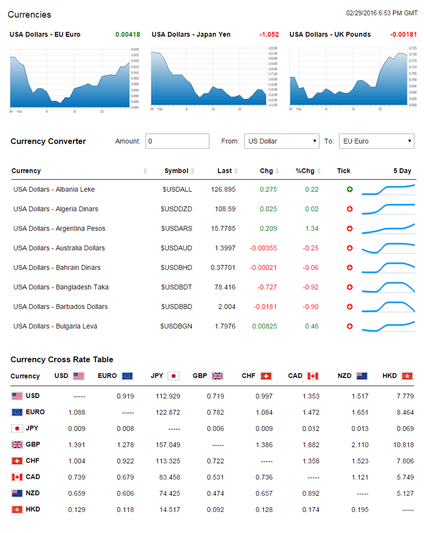 QuoteMedia has a wide range of Foreign Exchange (Forex) and Currencies content solutions, ranging from simple Forex charts and currency converter calculators, to detailed Forex quotes, analytics, advanced charting, news and commentary. These attractive and fully customizable tools and products are a great addition to any site.