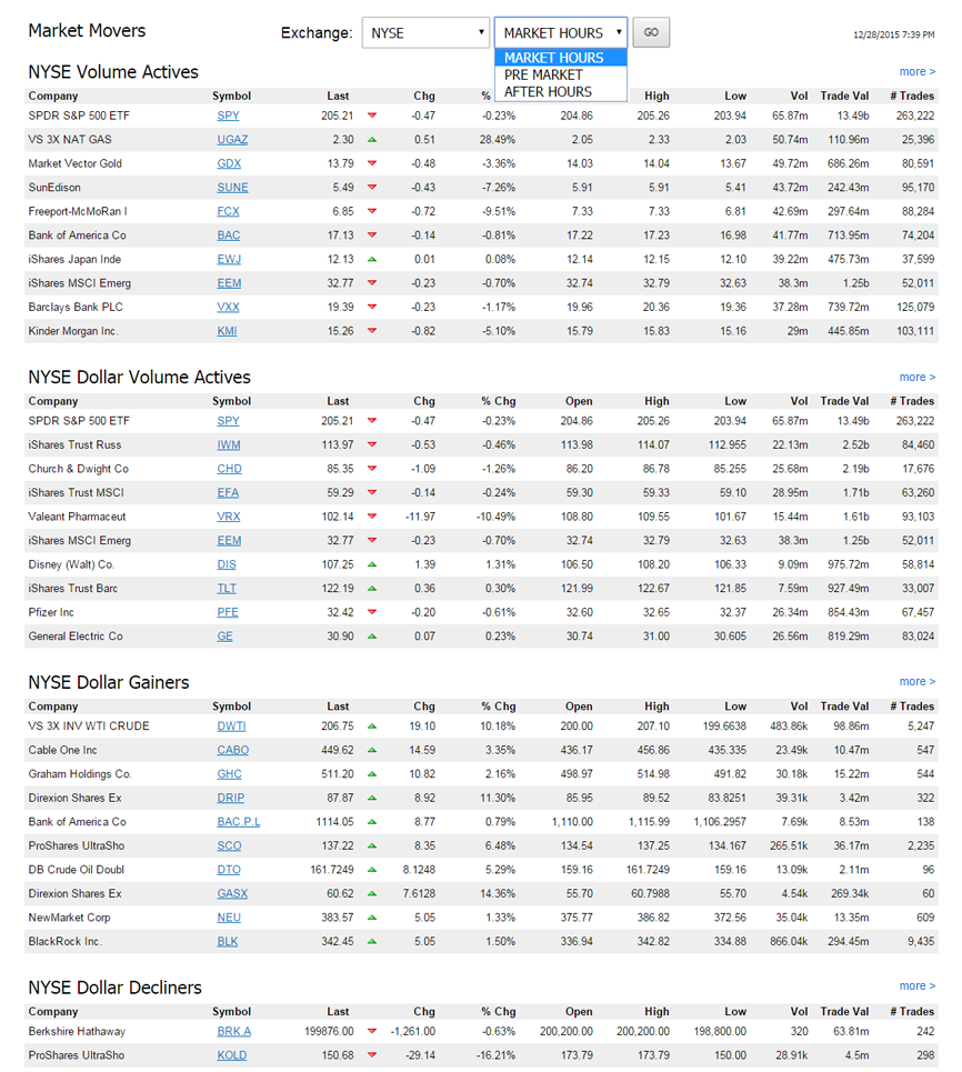 Users can look at the movers for Market Hours, Pre Market, or After Market.